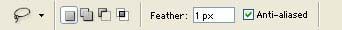 But let's use the Lasso tool, as it's quick and dirty. Another little trick if you find it difficult to trace around your image and keeping your hand from shaking around, set the Feather of the Lasso tool to 1 or 2 pixels, and leave Anti-aliased checked: