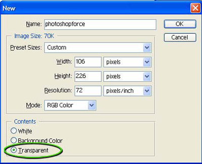 Then we'll create a new image. Press Ctrl + N on your keyboard, (Alternatively by going to "File->New" from your tool bar).