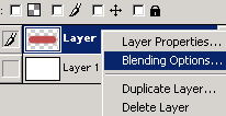 2. Next right click on the layer you made and choose blending options. Do as shown below. And click OK.
